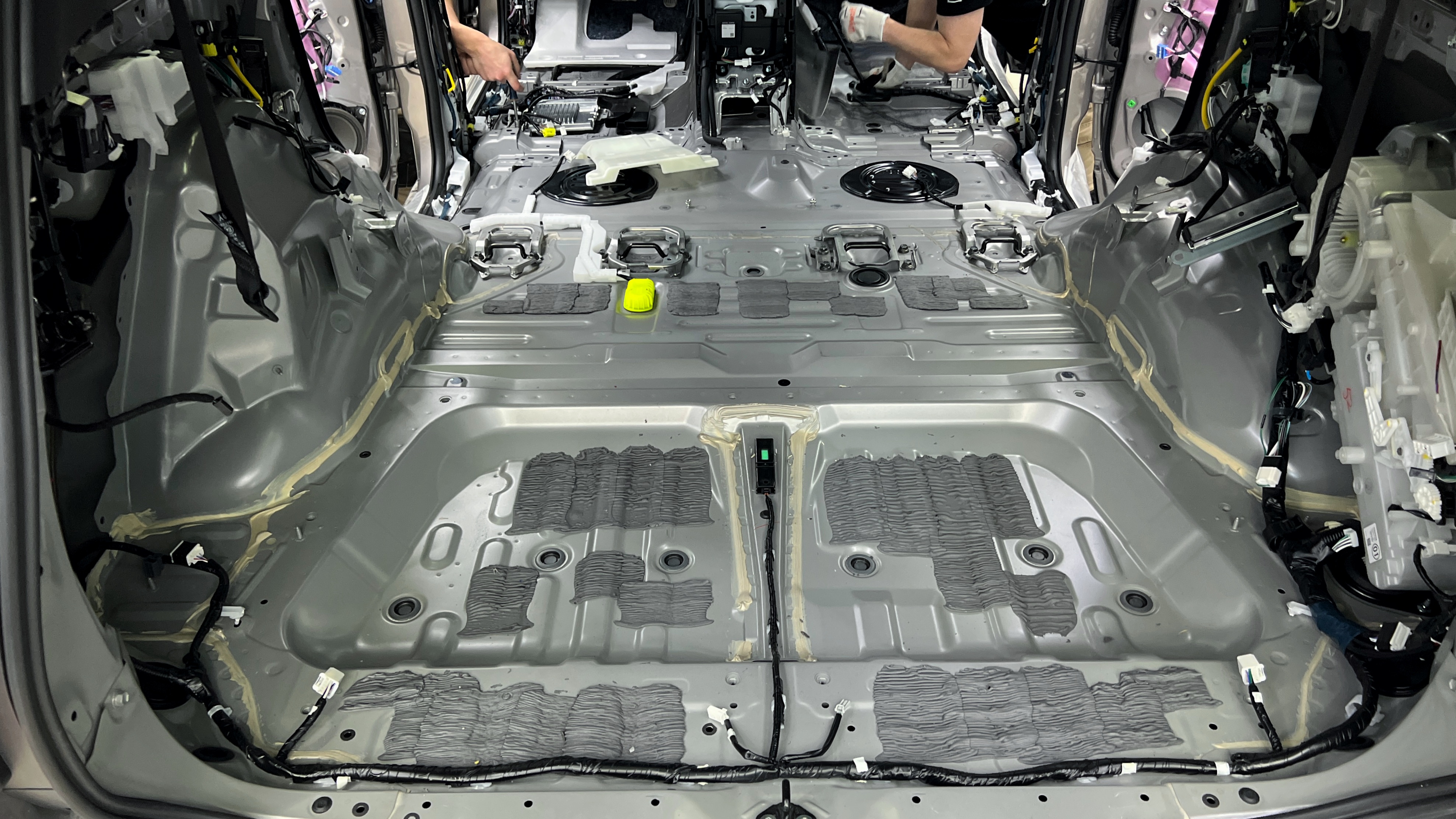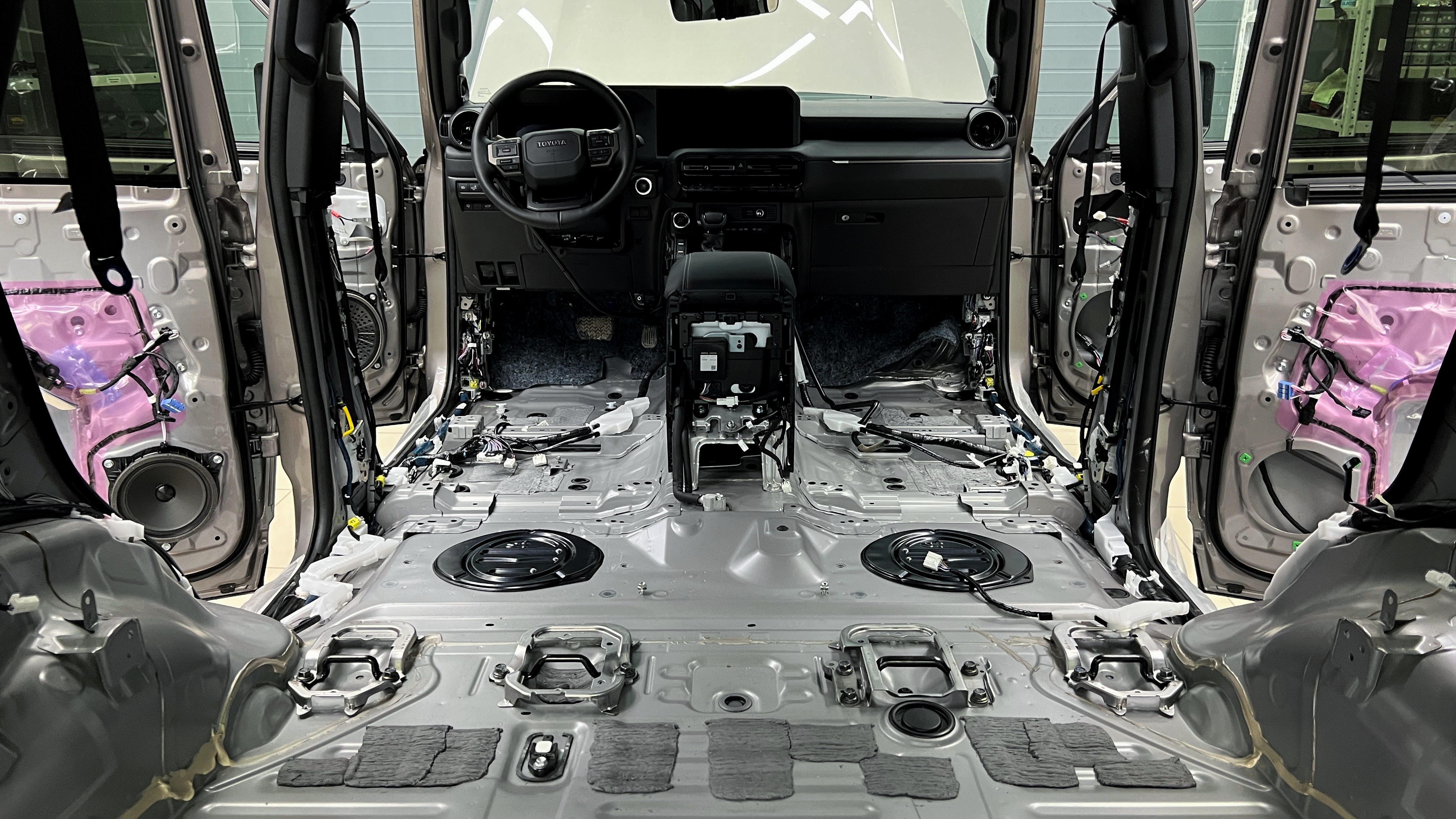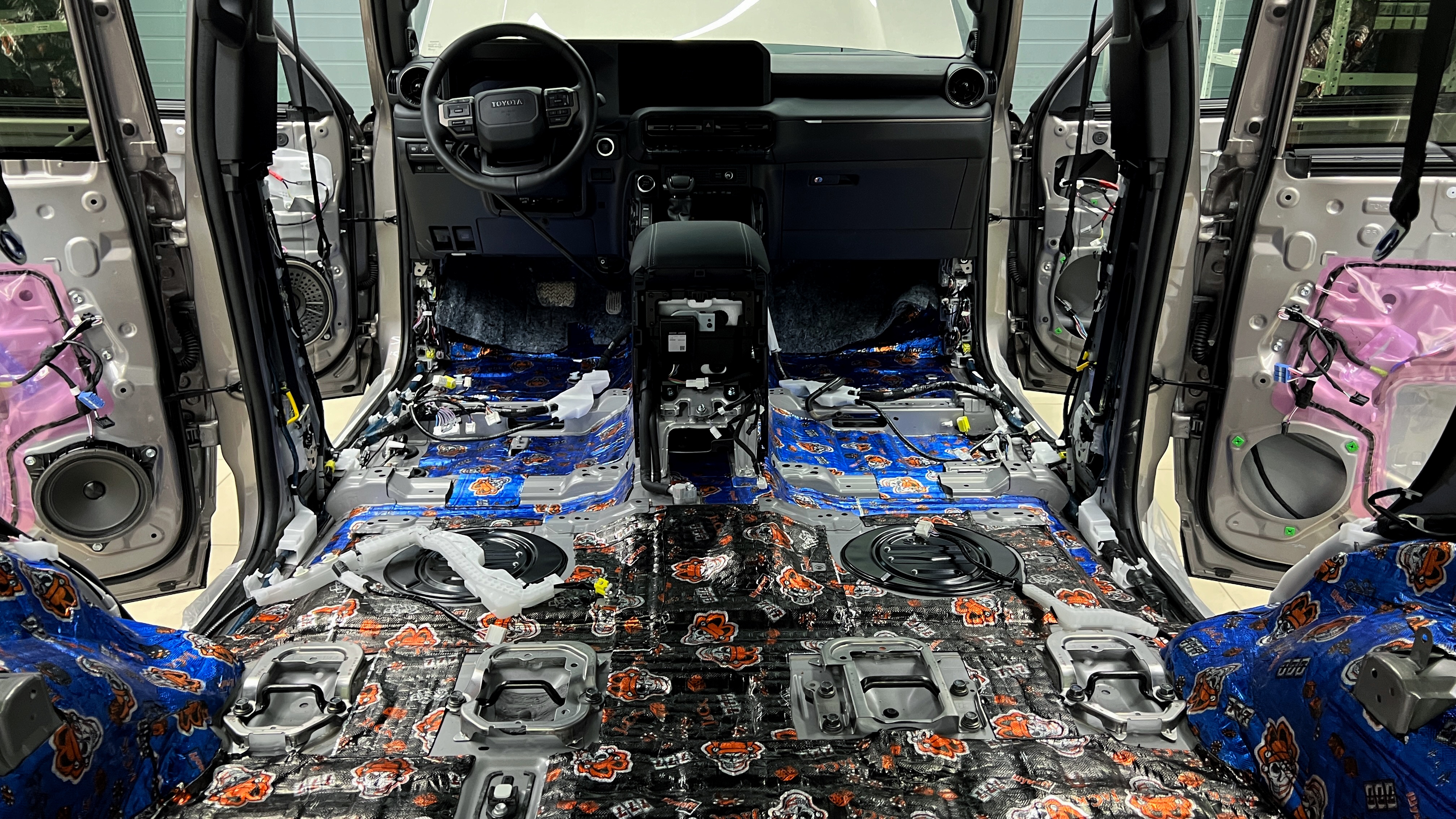 От моторной перегородки и до заднего сиденья вмести с ним клеится мощный многослойный шумо и звукоизолятор Шумофф Prizma 6.
