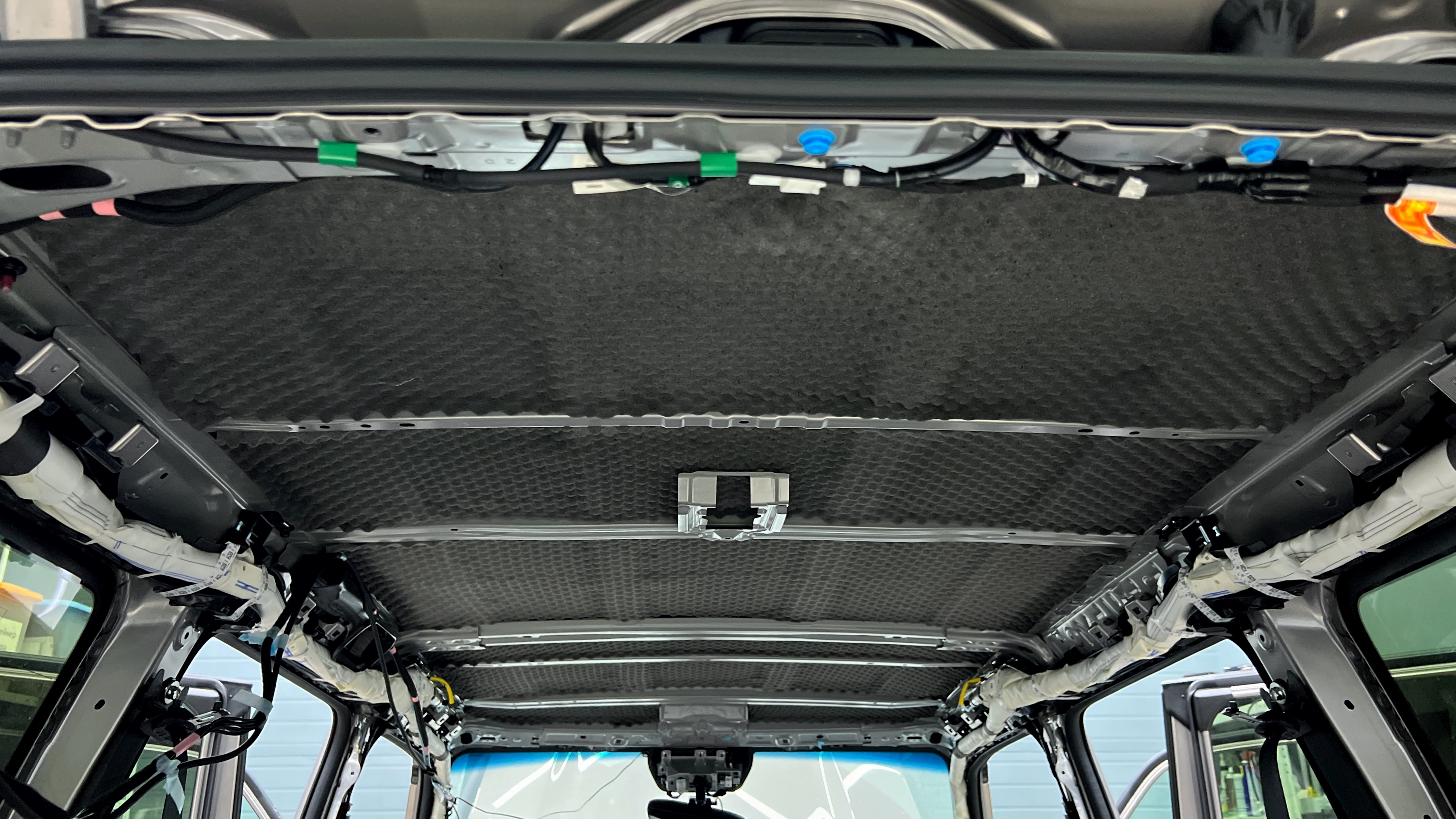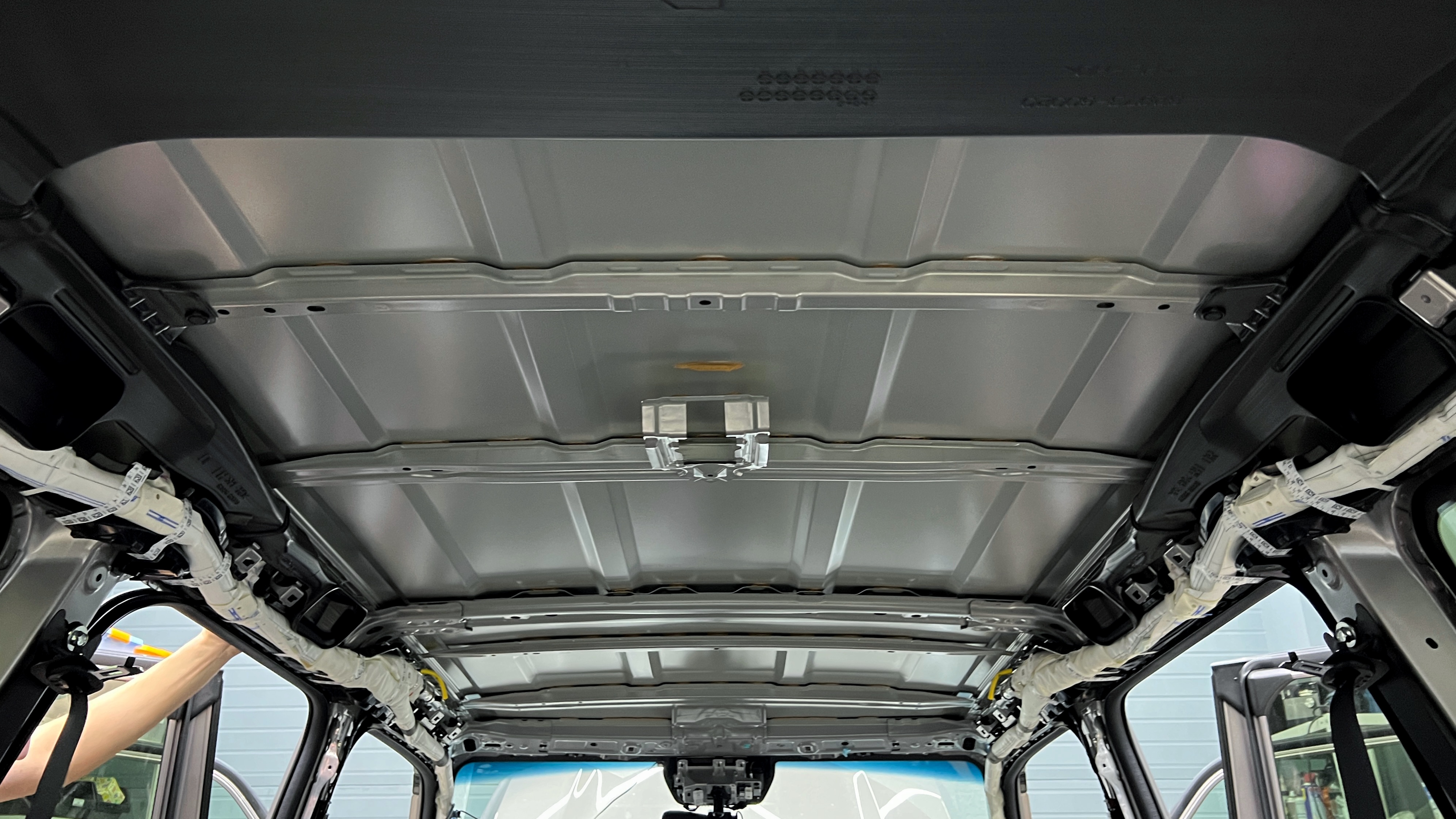 Приступаем к разбору крыши. Удаляем штатную шумоизоляцию и обезжириваем поверхность.